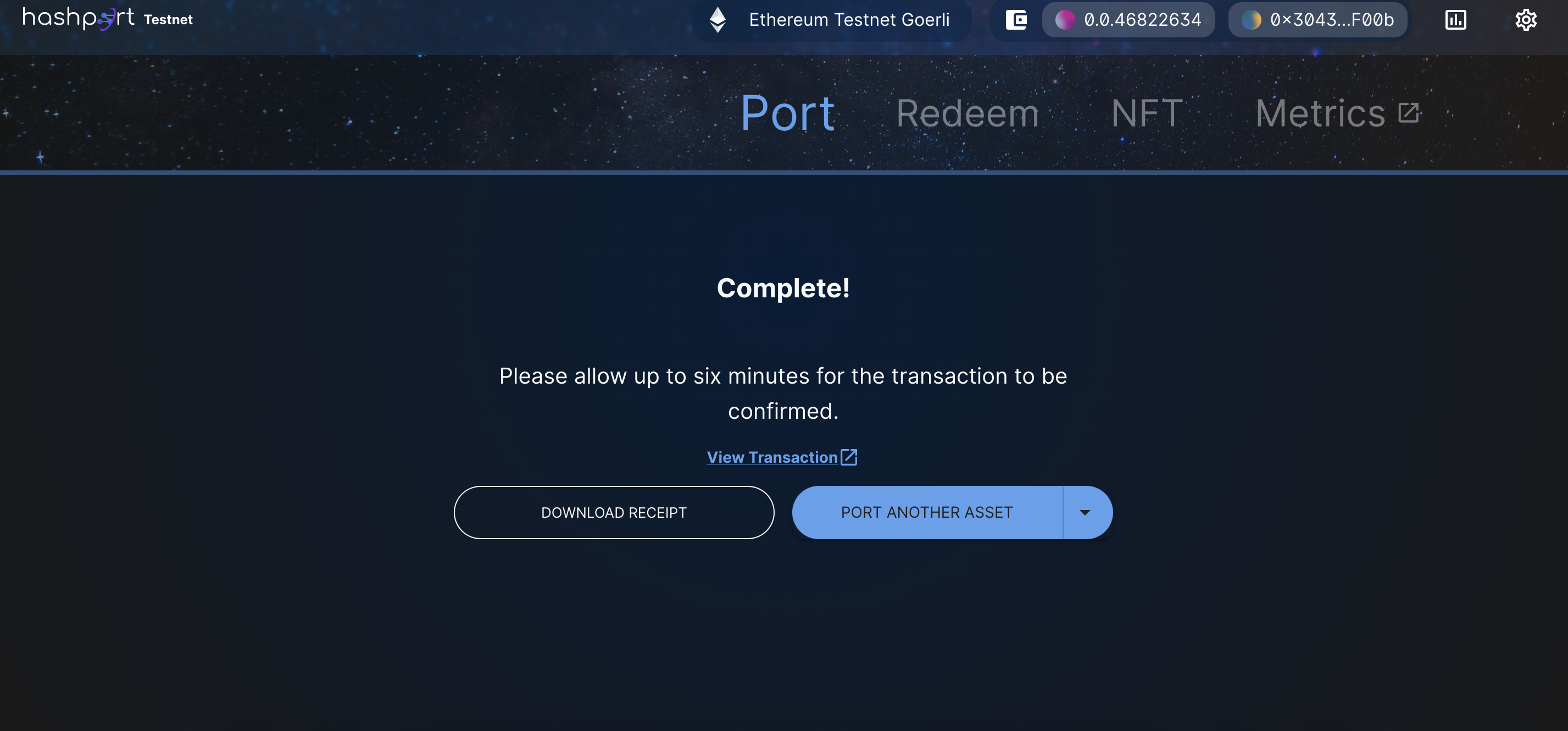 12. HashPort will run a check to verify your assets have been sent to you:&#x20;