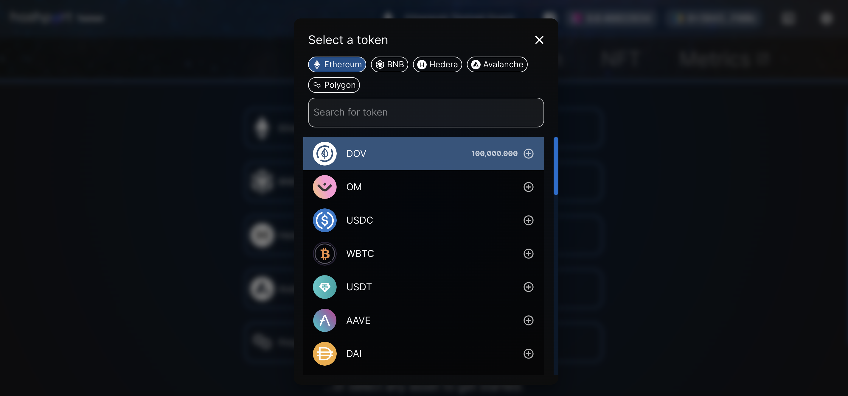 1. Let's take DOV for this example. Make sure your DOV tokens are imported to your Metamask balance.&#x20;